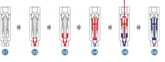 05. Khi máy bơm hoạt động, quá trình 2 và 3 lặp lại để làm cho piston đẩy buồng trên để xả.