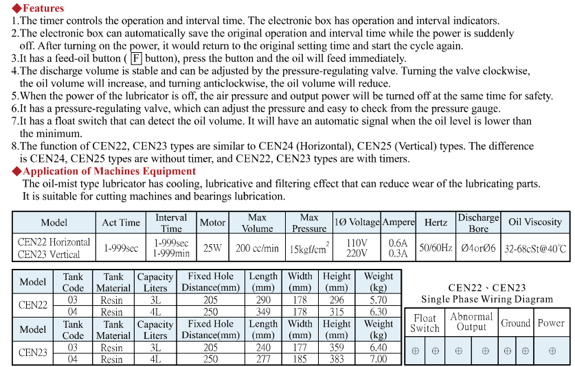 Máy Bơm Dầu Phun Sương CEN22-03 CHENYING